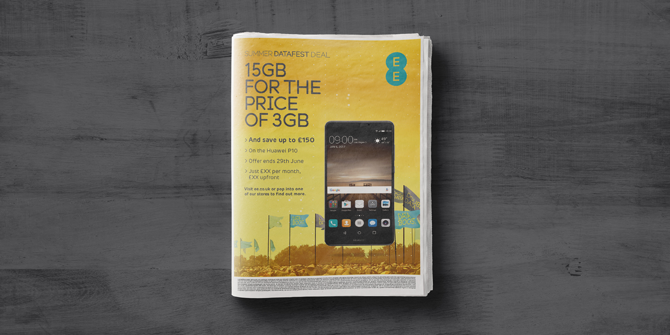 Summer is about festivals of all shapes and sizes. We decided to link June’s data promotion directly into the Summer of Festivals idea by creating our very own. All local EE shops would get involved by creating ta Summer Festival ‘feel’ instore backed up with a nationwide full service campaign. As EE already has heritage in this area, with their links to Glastonbury it felt like the perfect match.