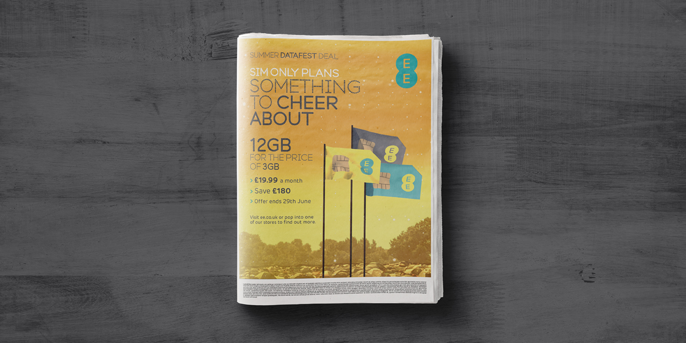 We were given a task by EE to produce a feel-good Summer campaign. Showing how EE could differentiate from the offers of their competitors we created a campaign that was bright and had cut through and impact without losing any of EE’s brand recognition and associations to value and service.