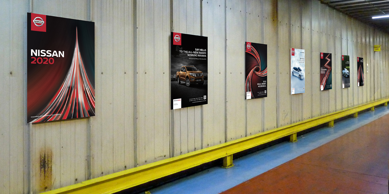 2020 will herald a new era for automation industry: robots will be on the road along with a new generation of consumer. To help to achieve this Nissan identified key areas within the business to focus on and deliver by 2020. Our creative came from the energy from the mass forward movement of vehicles. We used this styling to create dynamic graphic shapes which represented the key subject areas.